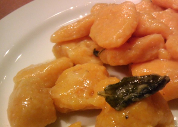 Melt butter with sage and brown. Coat gnocchi with butter, and top with remaining cheese!
