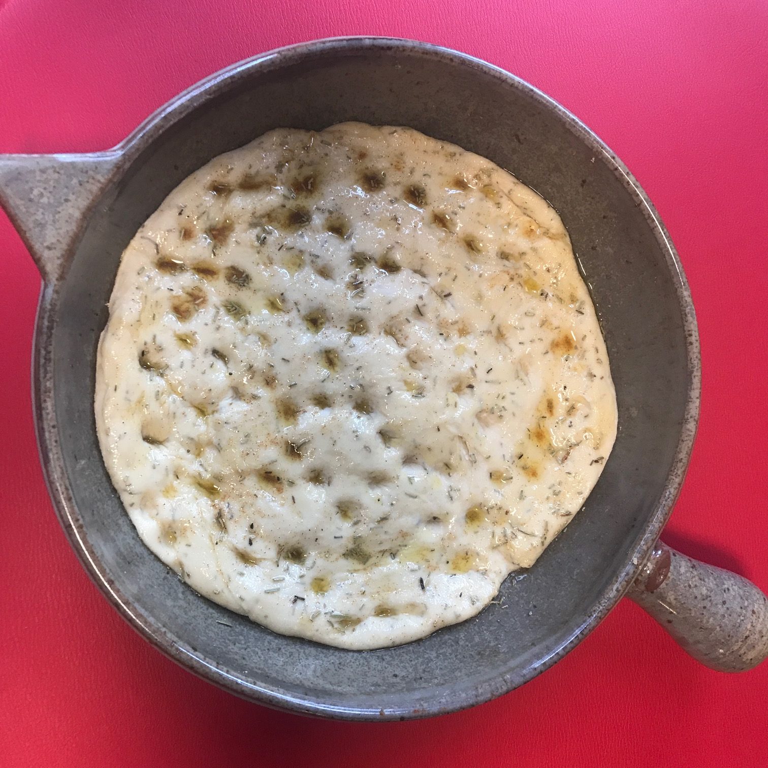Focaccia in a Handmade Cazuela