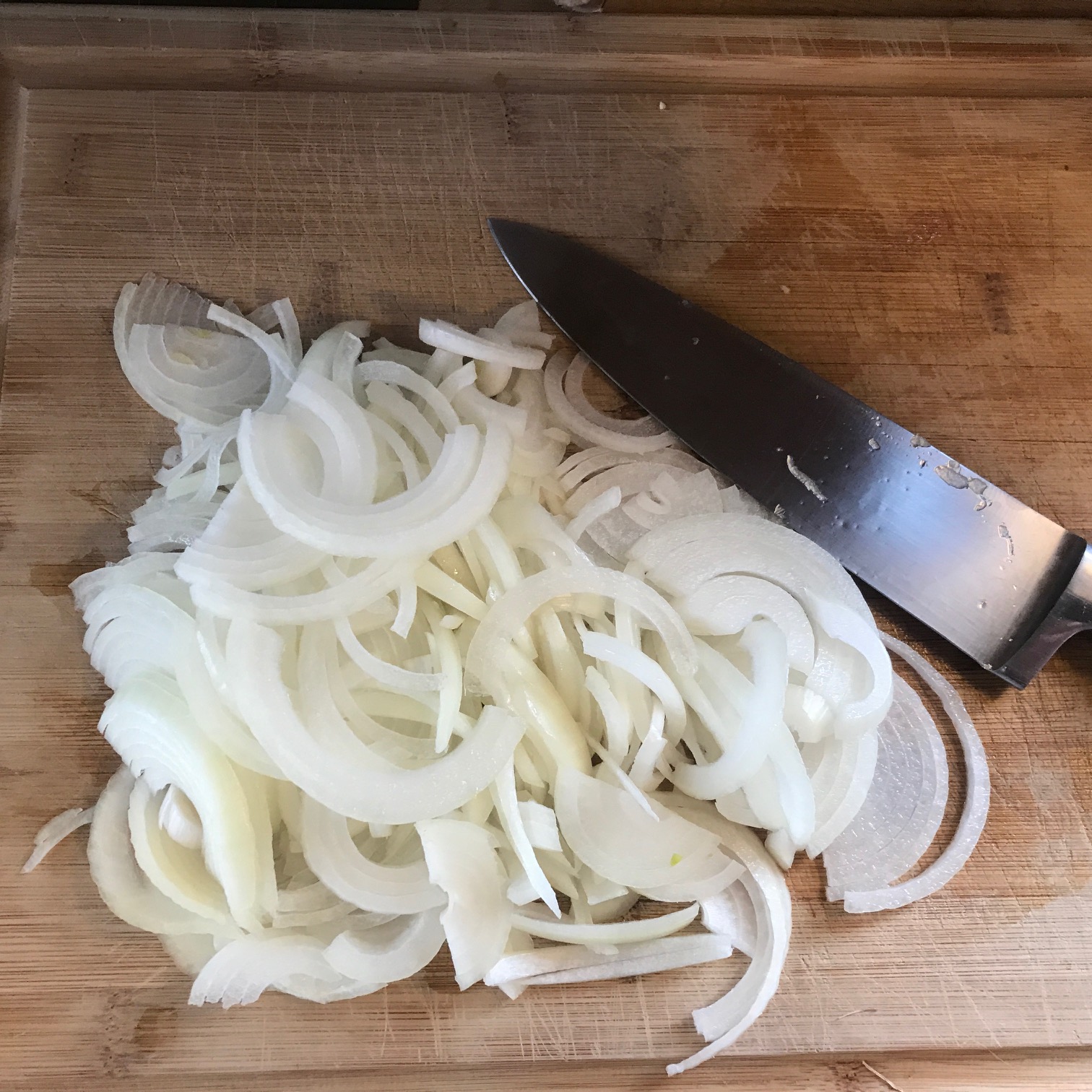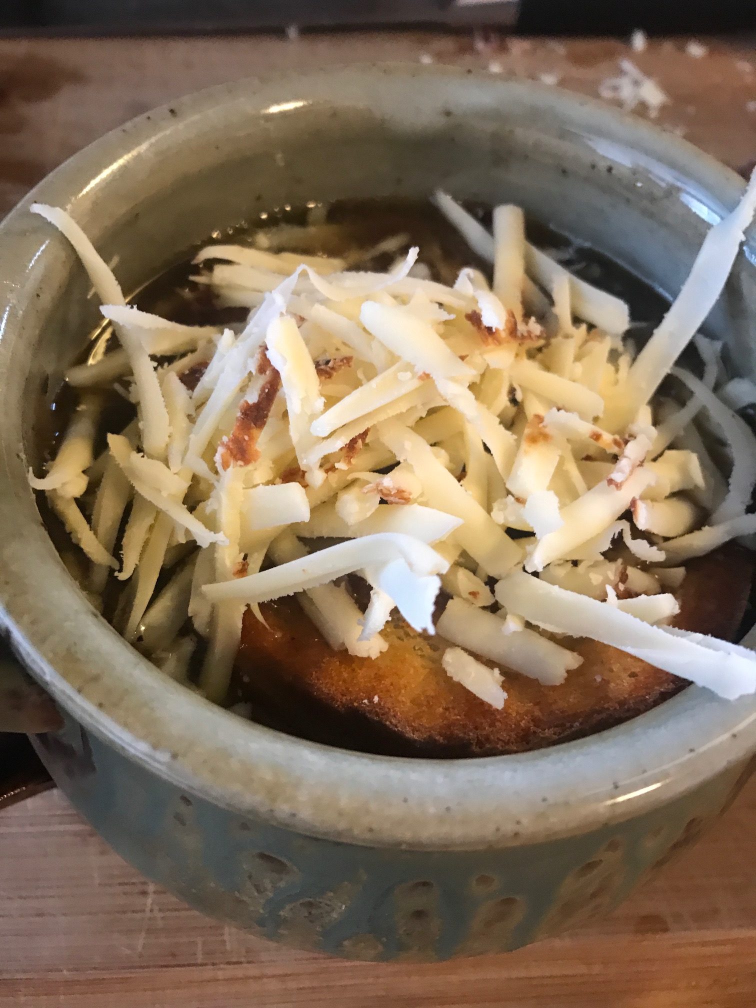 We wanted to make a French Onion Soup since we’re having winter in April. The best way to make this recipe is to layer in flavors one at a time, give them a few minutes to blend.