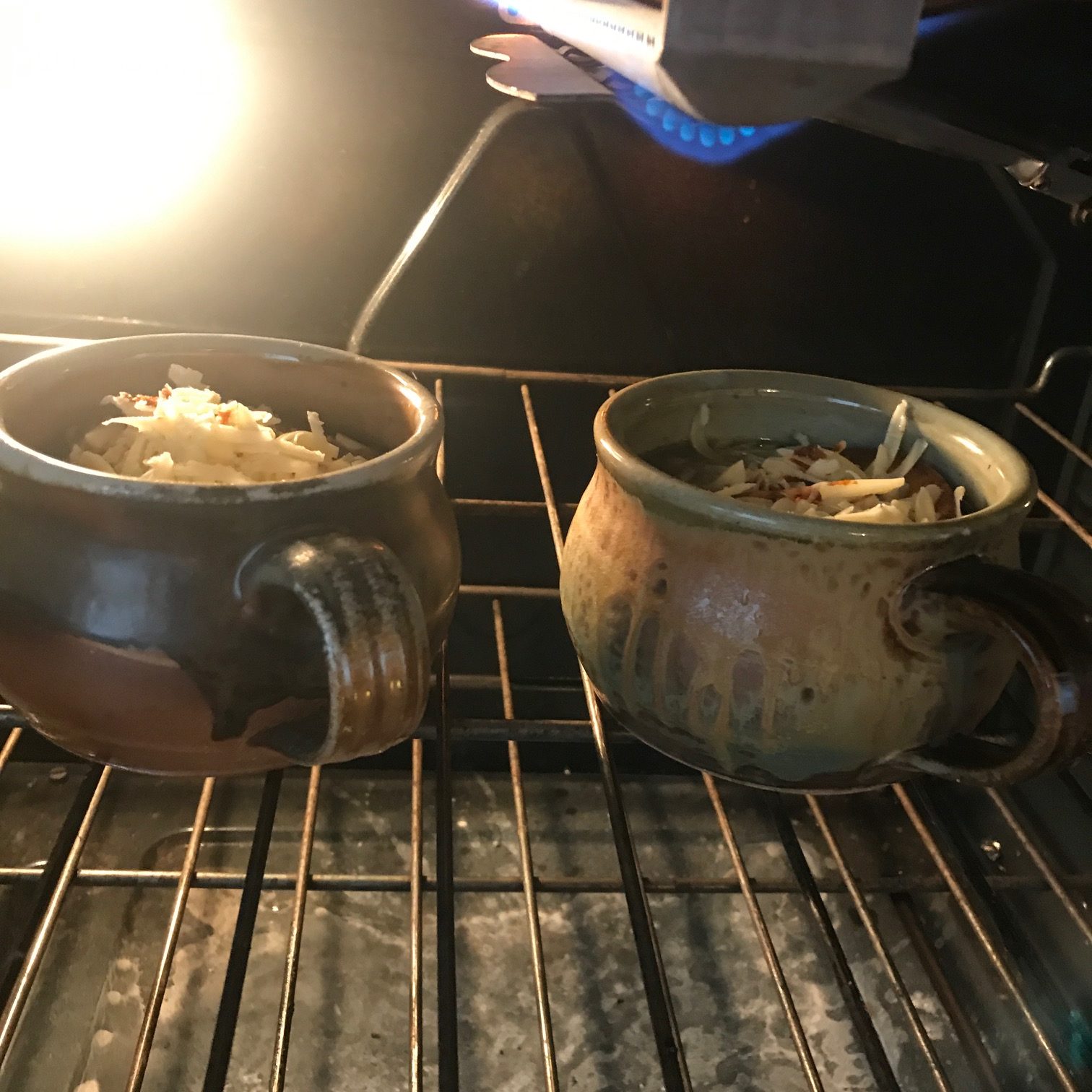 - remove from oven and spoon into oven-safe handled soup bowls