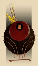 Mark Hines Designs located in Prescott Arizona. They offer larger pieces of glass and metal that are decorative as well as functional. We love the added focal impact they provide to our gallery. The artist, Mark Hines currently produces a large and varied line of modern slump glass pieces making use of knowledge he gained while working with stained glass and ceramics. Sand molds give the glass an organic look and iron stands make the pieces very functional. Glass Vases, wall hangings and other fine-art glass vessels can be the perfect touch in your interior decorating project.