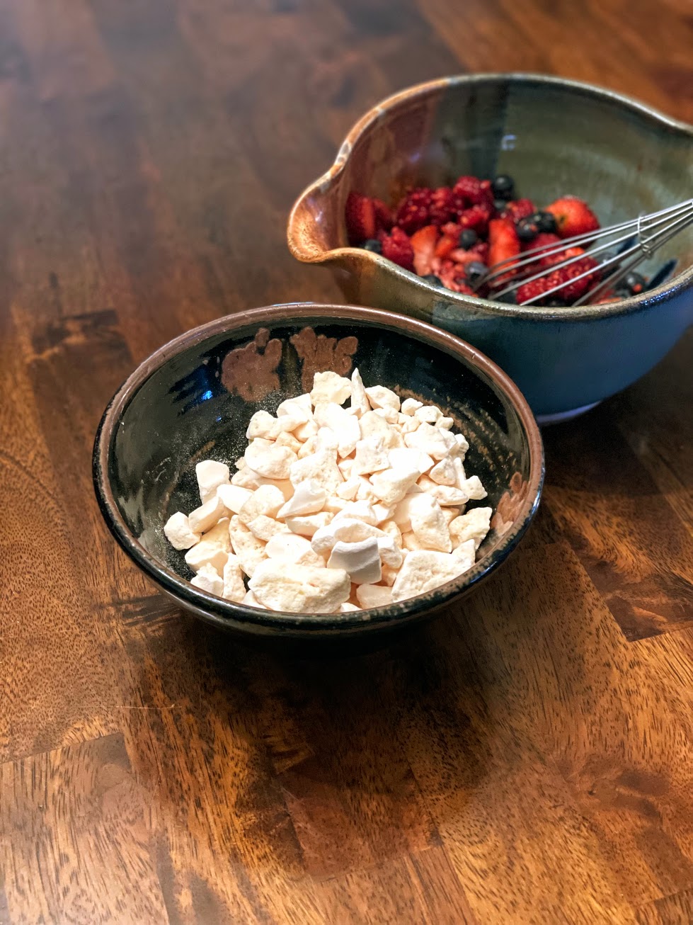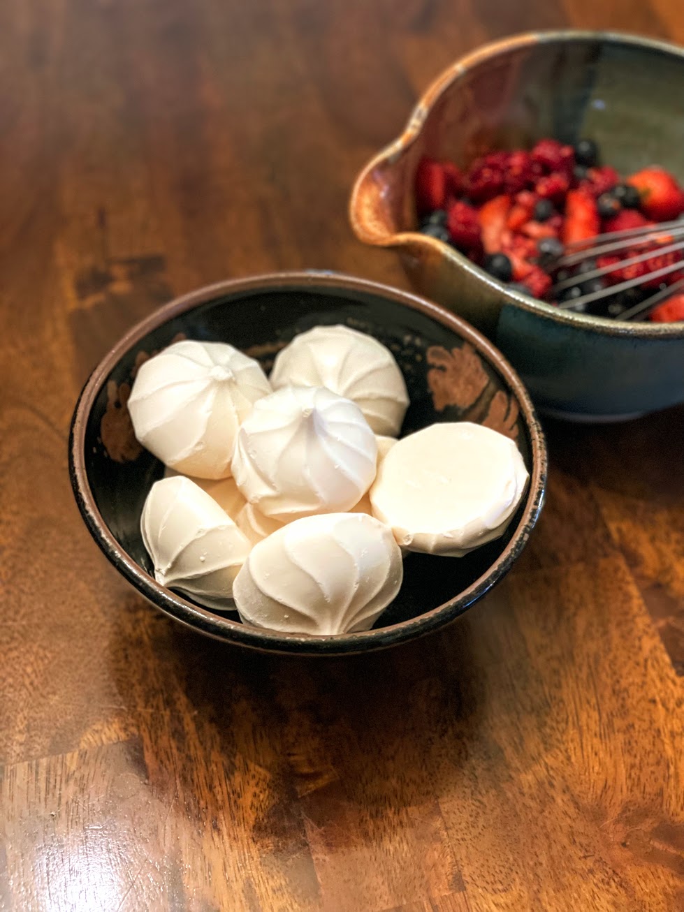 - 1 cup hard meringues, crushed (we buy ours at Trader Joe’s, but they’re also available on Amazon)