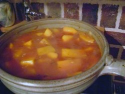 Add the tomato paste, spices and 4 cups hot water and bring to a boil, then cook at a simmer until the squash is tender, about 20 minutes. Remove from heat.