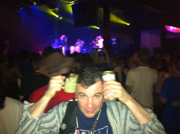 The Travel Mug was seen out and about at South by Southwest in Austin, TX. In this photo the Mug is at the famed Parish bar and the blurry band behind is New Orleans’ only Trombone Shorty.