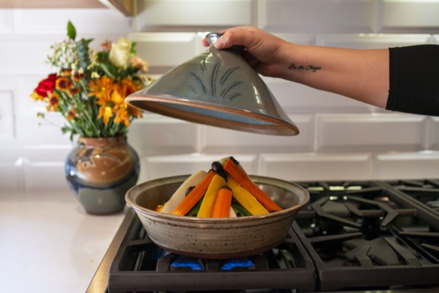 Our top two pots are the Grill Basket and the Tagine. We make the only handmade clay grill basket in America (maybe the world). We also make the only domestic, handmade, clay tagine designed for the stovetop (traditional in Moroccan cooking). Those two pots compete for #1 because they’re so unique.