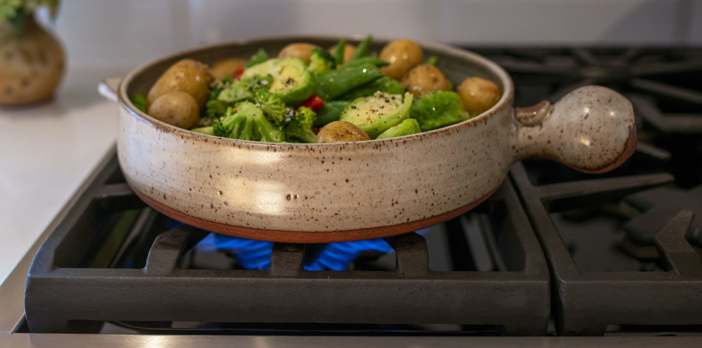 I own a pottery studio and art gallery in central Minnesota. We’re about to celebrate 30 years in operation. We specialize in pottery for cooking. We don’t make mugs. We have a special clay and glaze combo that allows the pot to expand and contract at the same rate, allowing them to go right on a stovetop or grill. Most pottery would crack in under a minute if you put it on a direct flame. There are only 2 other potters in the USA that specialize in pottery like this (one in Seattle-area and one in New Hampshire), we all have a slightly different aesthetic.