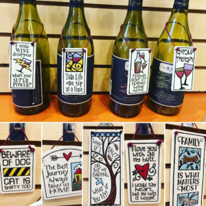 Spooner Creek tiles from Wisconsin are fun and thoughtful gifts. Grab these wine bottle tags to dress up a hostess gift. Or tuck one of these mini plaques in a stocking. Some are funny, some our personal; you’ll be sure to find the perfect one for everyone on your list this holiday season. Stop by and pick them up today!
